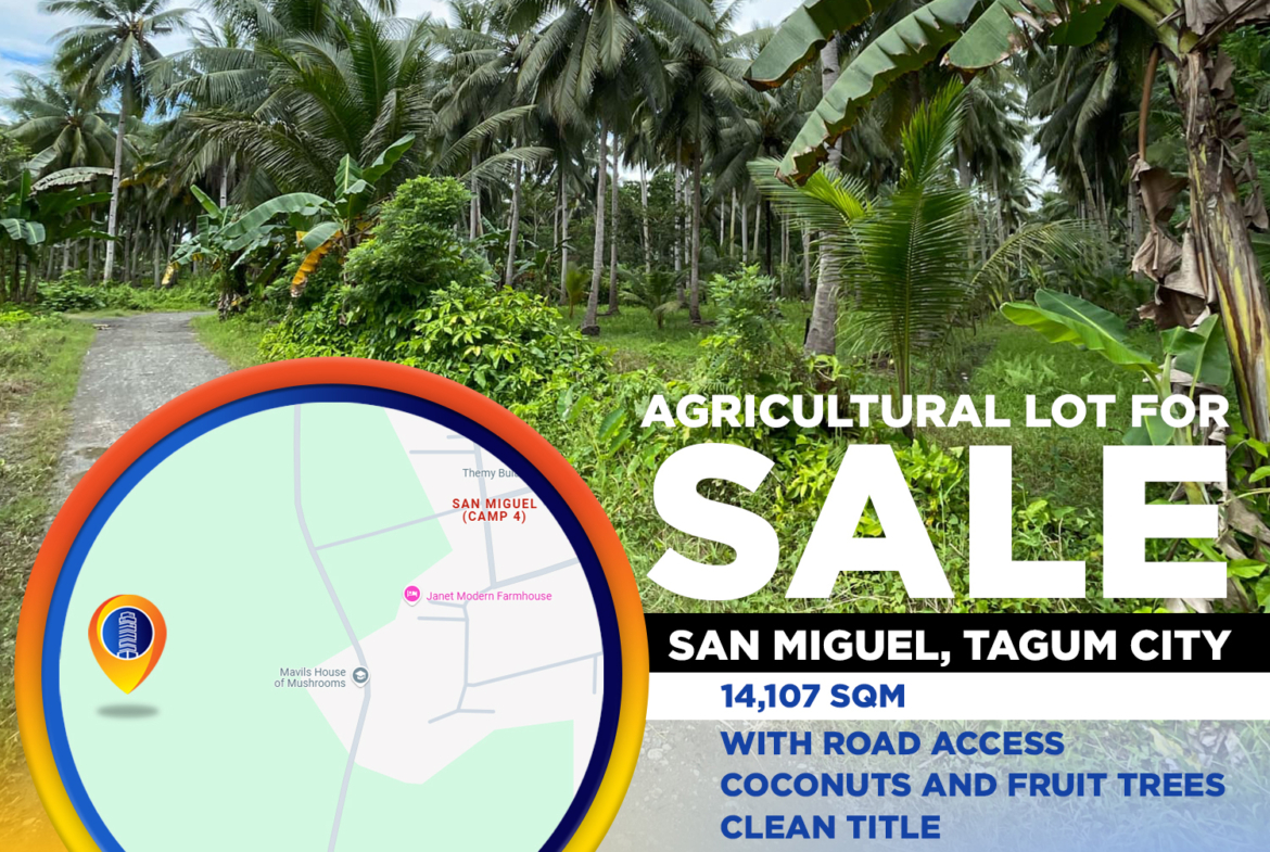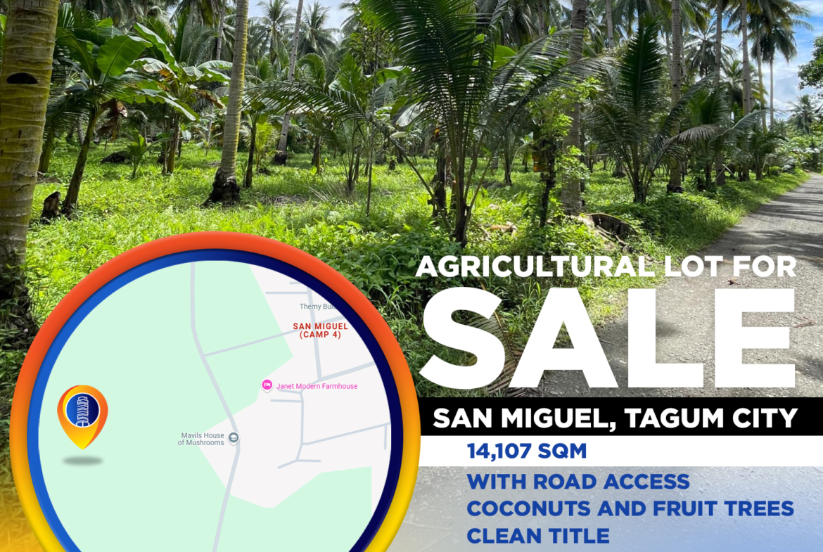 This 14,107 sqm titled lot in San Miguel, Tagum City is perfect for farming, agribusiness, or future development.