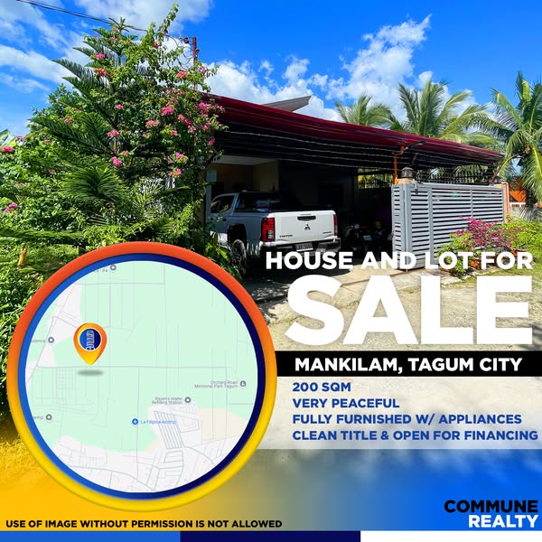 Skip the stress of building and furnishing—this charming 200 sqm home in Purok Mankilam (near Tagumpay Homes) is fully equipped and ready for you to move in.